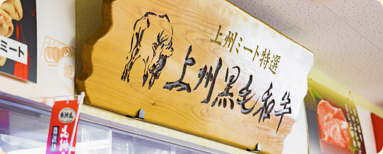 自然豊かで、古くから畜産が盛んな群馬県。風味豊かな牛肉として全国的に有名な「上州牛」、群馬名産の小麦で育てられたキメ細かくなめらかな味の「上州麦豚」を中心に、びっくりするほどたくさんの「おいしいお肉」を取り揃えています。美味しさの秘密は、どこにも負けない卓越した技術。肉のプロフェッショナルとして、毎日おいしいお肉と笑顔を届けています。