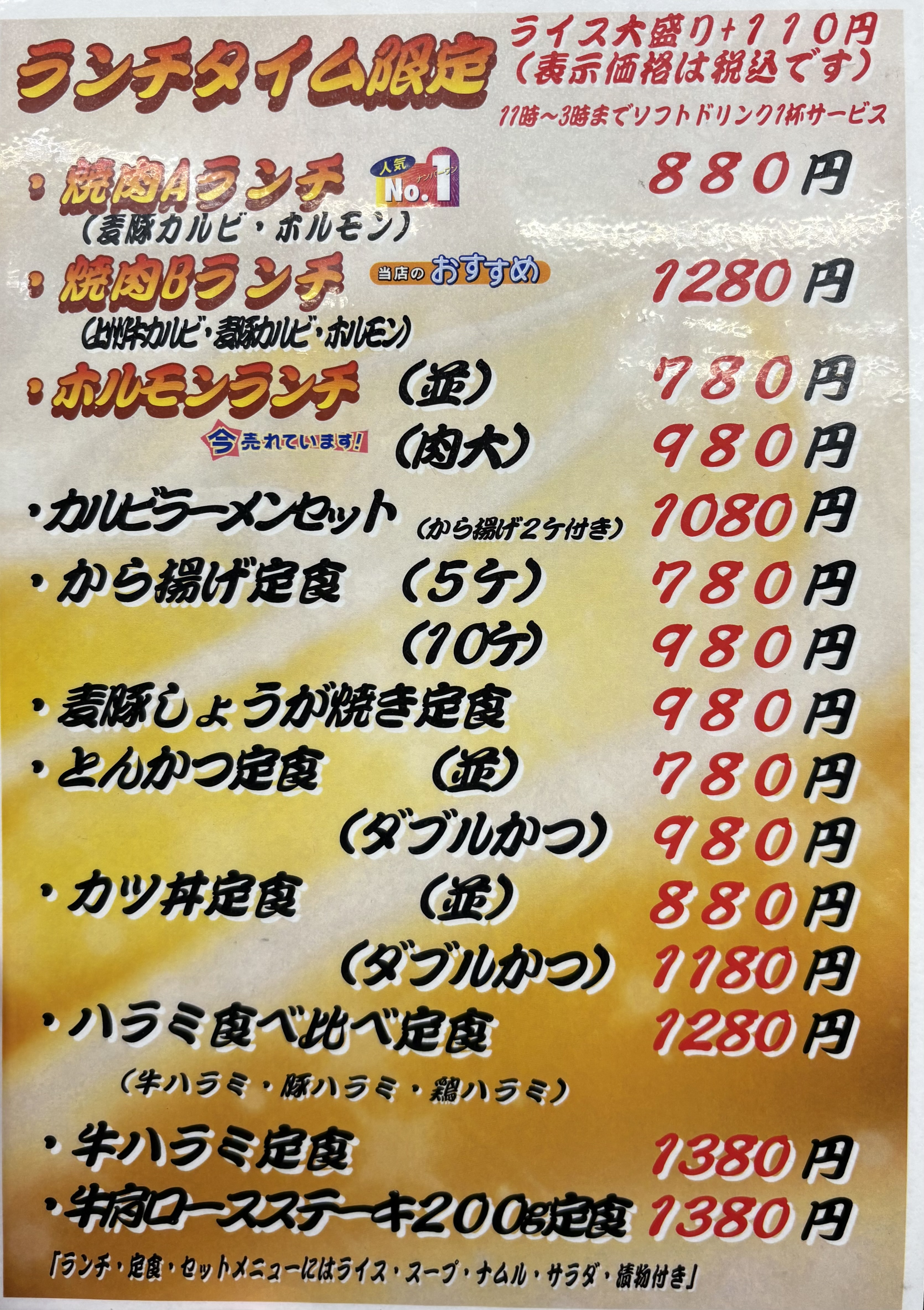 牛ハラミ定食!カルビラーメン!牛上タン塩!