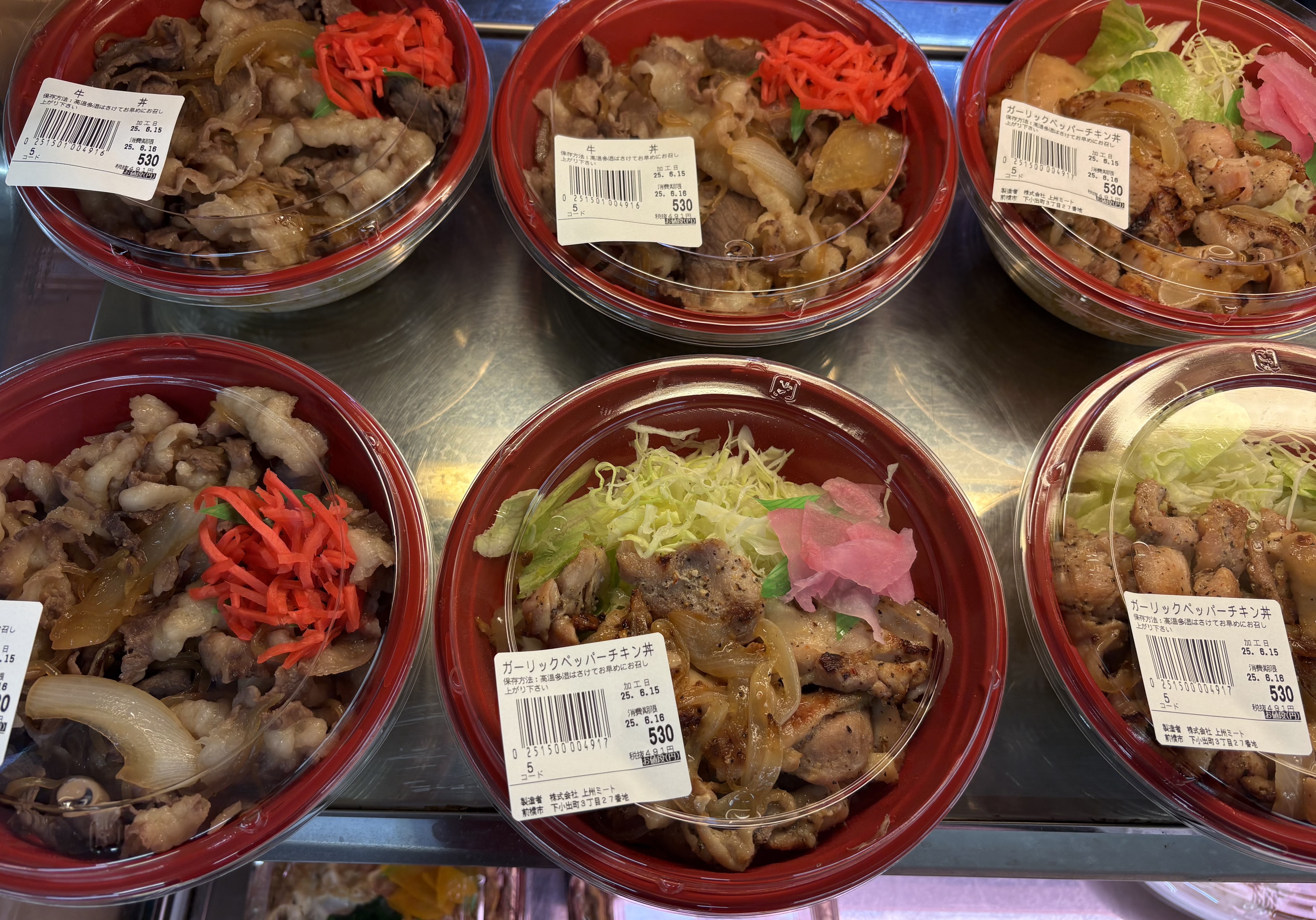 牛丼、かつ丼、ビビンバカルビ丼、