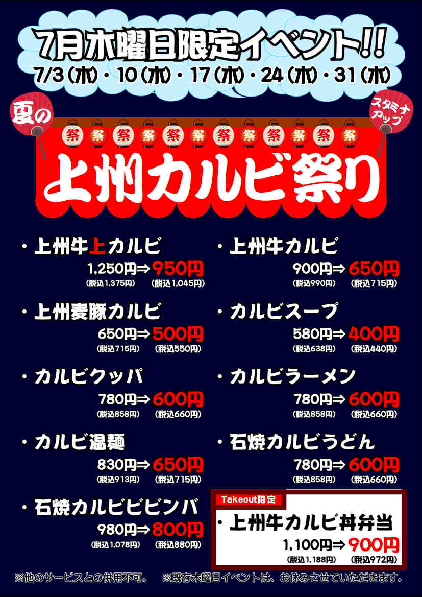 7月の毎週木曜日は上州カルビ祭り開催しますっ!