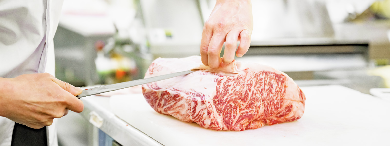 上州ミートの強みは、創業者が一流の肉職人だったことです。だから、単に良いお肉を仕入れるだけでなく、いかにそのお肉を「最も美味しい状態に加工し、ご提供するか」ということに情熱を注いできました。切る方向、角度、厚さ、それぞれお肉の種類に応じて、最も美味しく食べられる加工を追求。単純に機械に任せるのではなく、人の目で見極めながら、人の手で加工します。