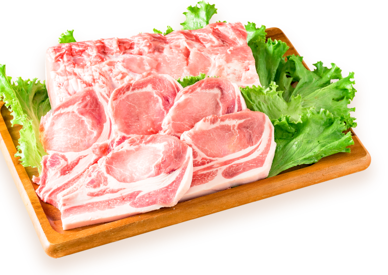 上州麦豚は、認定された生産農家により、上州の自然な環境の中で育てられ、飼育管理マニュアル・衛生マニュアルを遵守し、指定配合飼料等により生産されています。当社では上州麦豚を一頭買いしております。当社自慢の職人がさばき、加工をして、安心・安全な豚肉をご提供させていただいております。